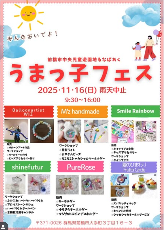11月16日(日)は、キッズワークショップやハンドメイド物販のイベント