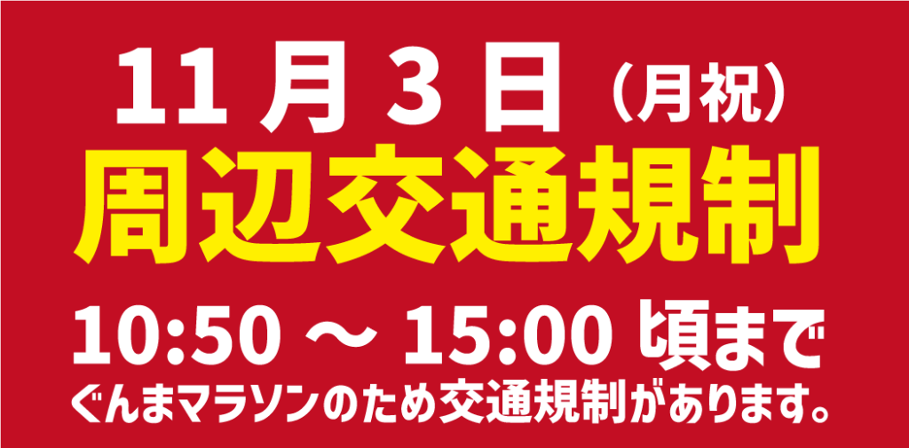 11月3日(月・祝)は、第35回ぐんまマラソン開催にともない